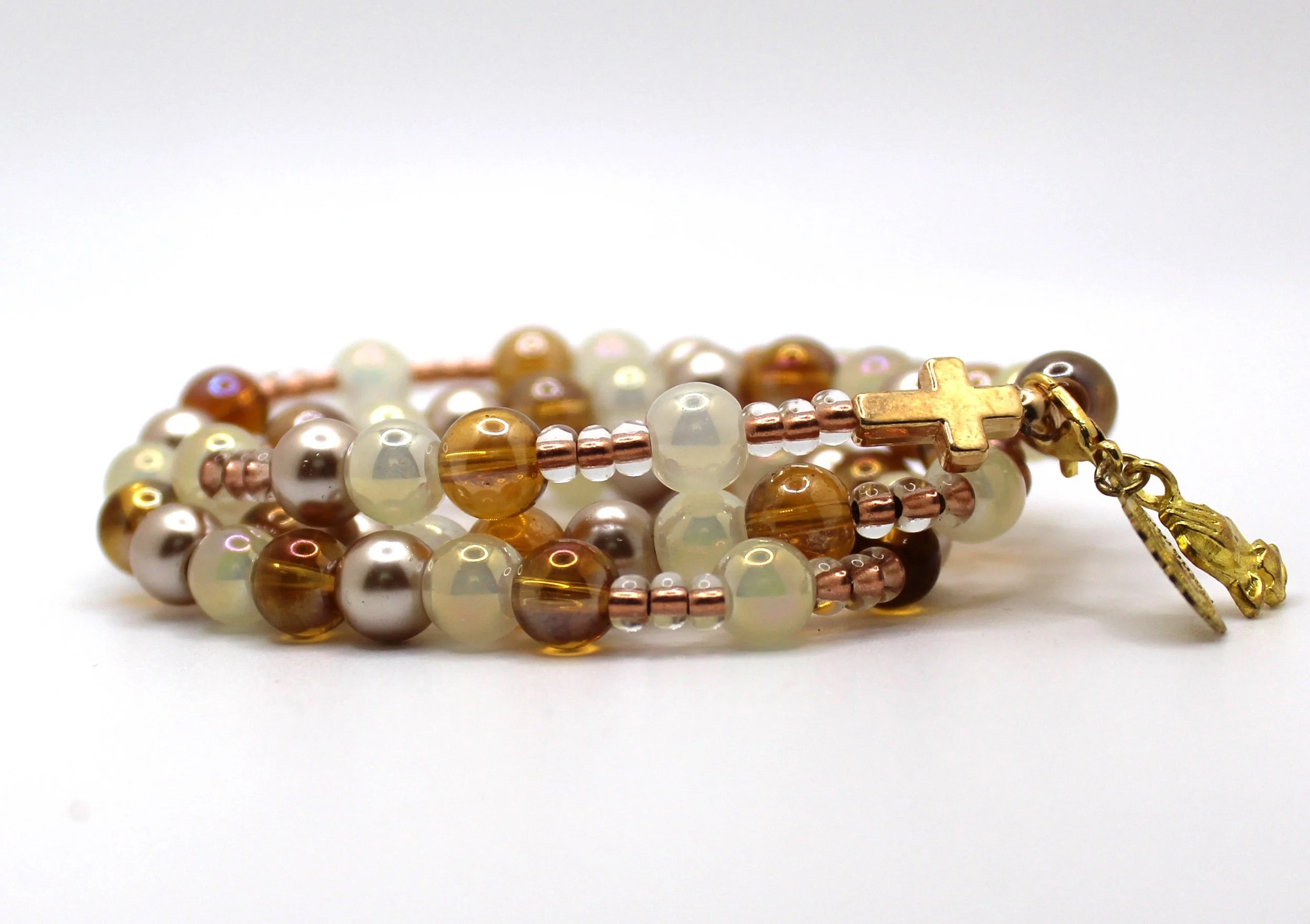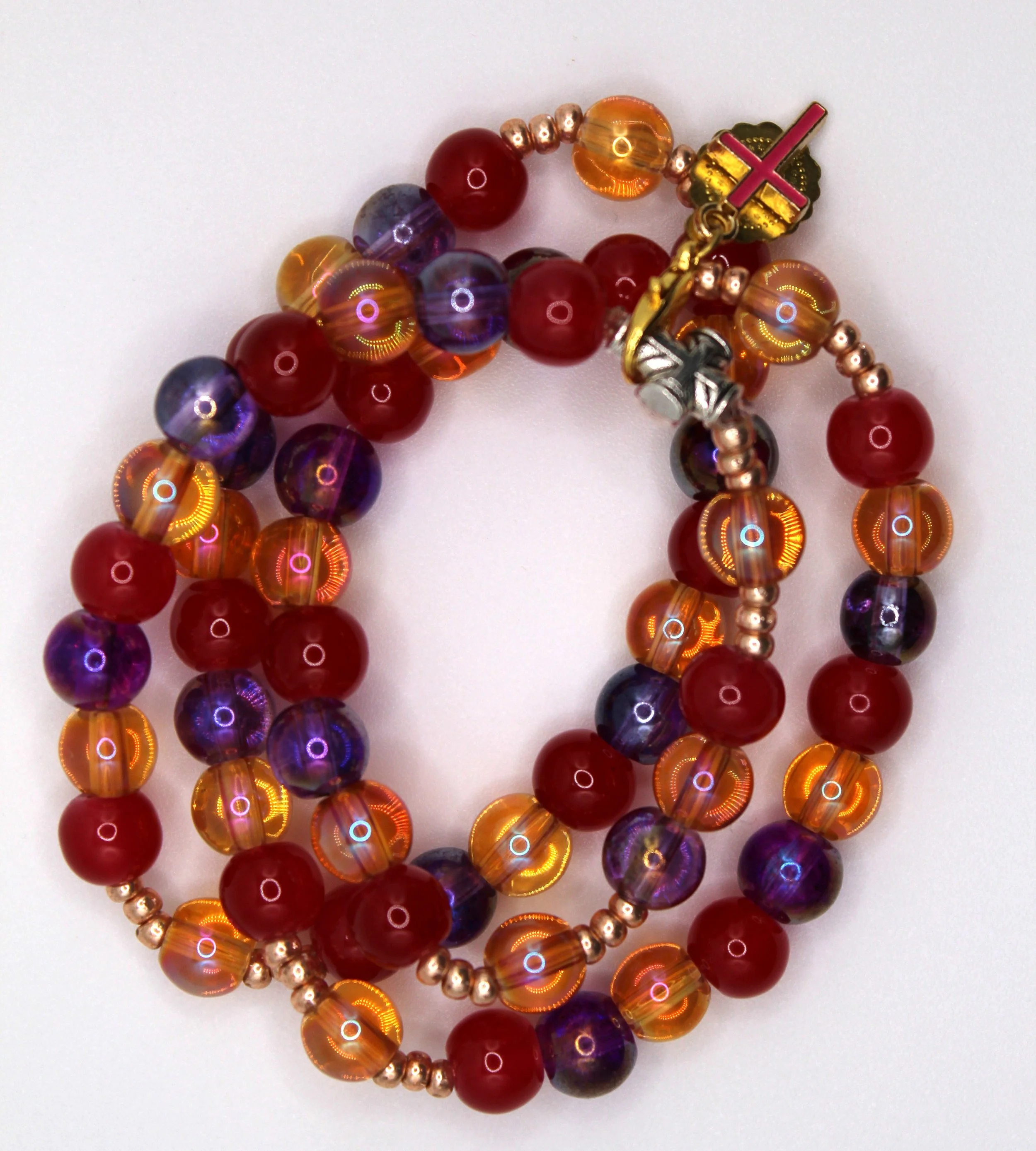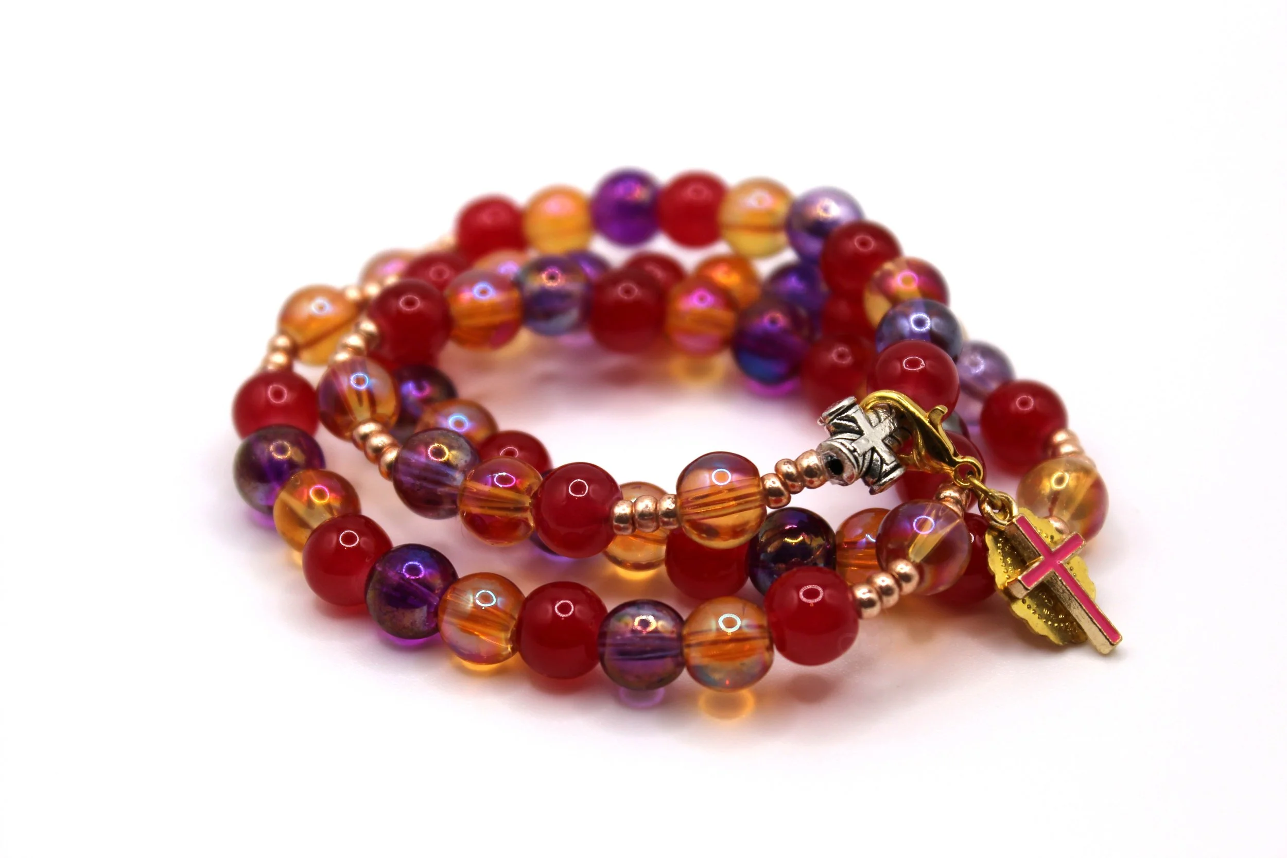 Triple Wrap Rosary Bracelet- Marbled Violet